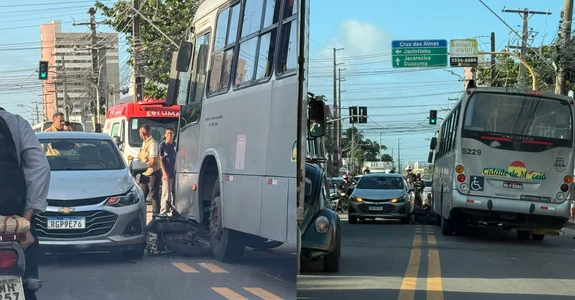 Um motociclista ficou gravemente ferido após um acidente envolvendo um ônibus do transporte coletivo urbano e um carro de passeio, na tarde desta segunda-feira (2), na Avenida Comendador Gustavo Paiva, no bairro de Cruz das Almas, em Maceió.
