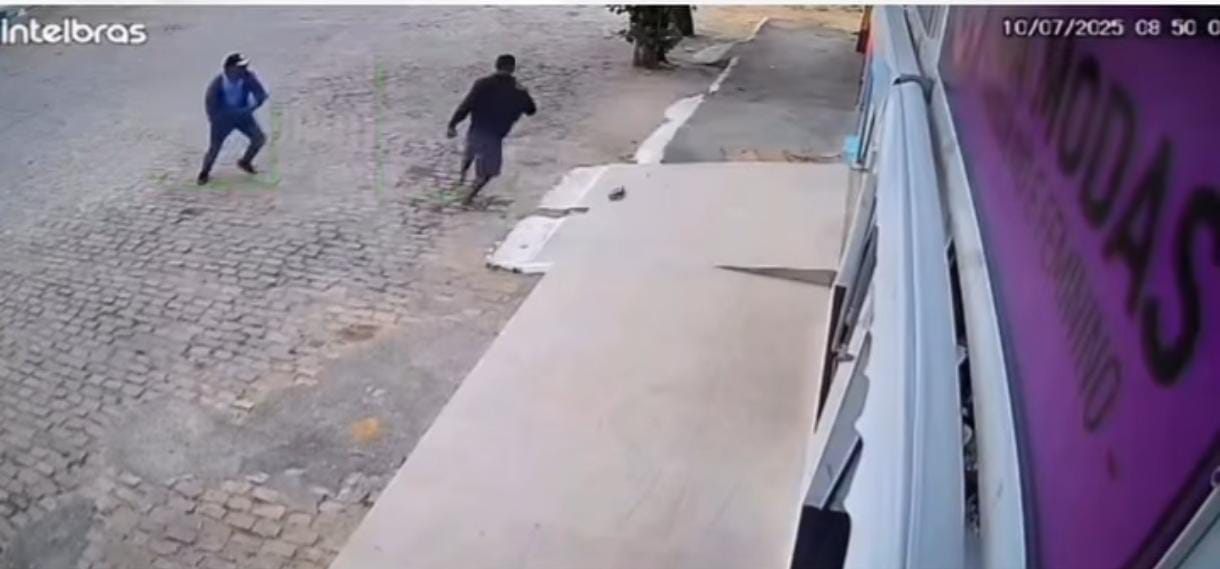 Nas imagens, um dos envolvidos ataca o outro, que cai no chão. Mesmo ferido, o homem mais velho reage com outro facão e também desfere golpes. O confronto só termina quando o mais jovem se afasta, e o idoso é amparado por testemunhas até a chegada do socorro.