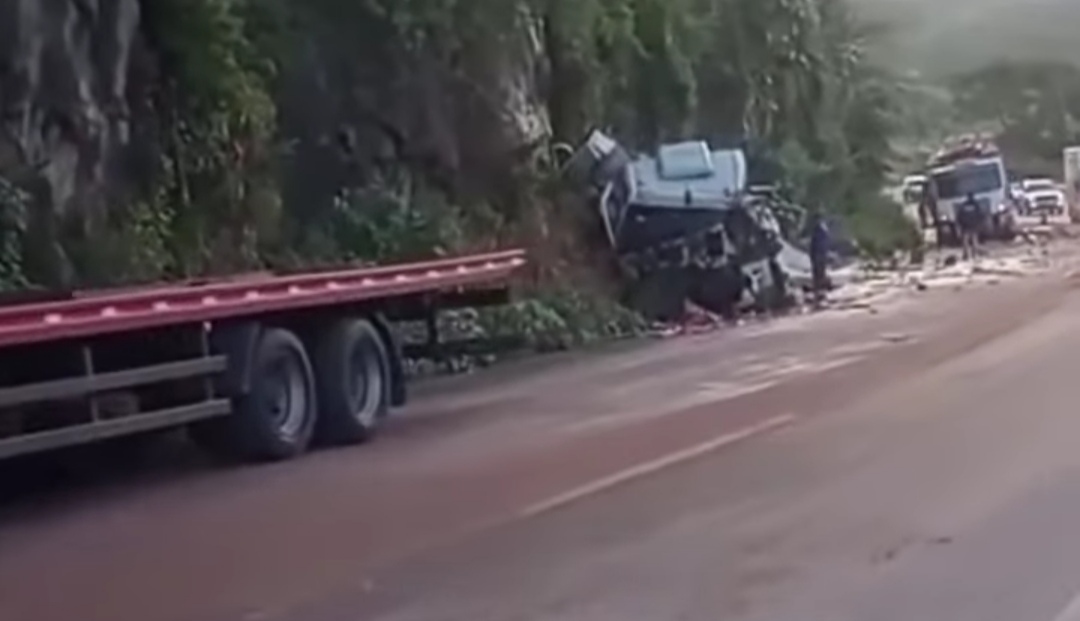 O acidente envolveu um caminhão VOLVO/VM 220 4X2R, que transportava alimentos, e um VW/24.280 CRM 6X2, carregado com blocos. Com o impacto da batida, o primeiro veículo tombou e a carga ficou espalhada na pista. O motorista desse caminhão morreu no local. O outro condutor saiu ileso.