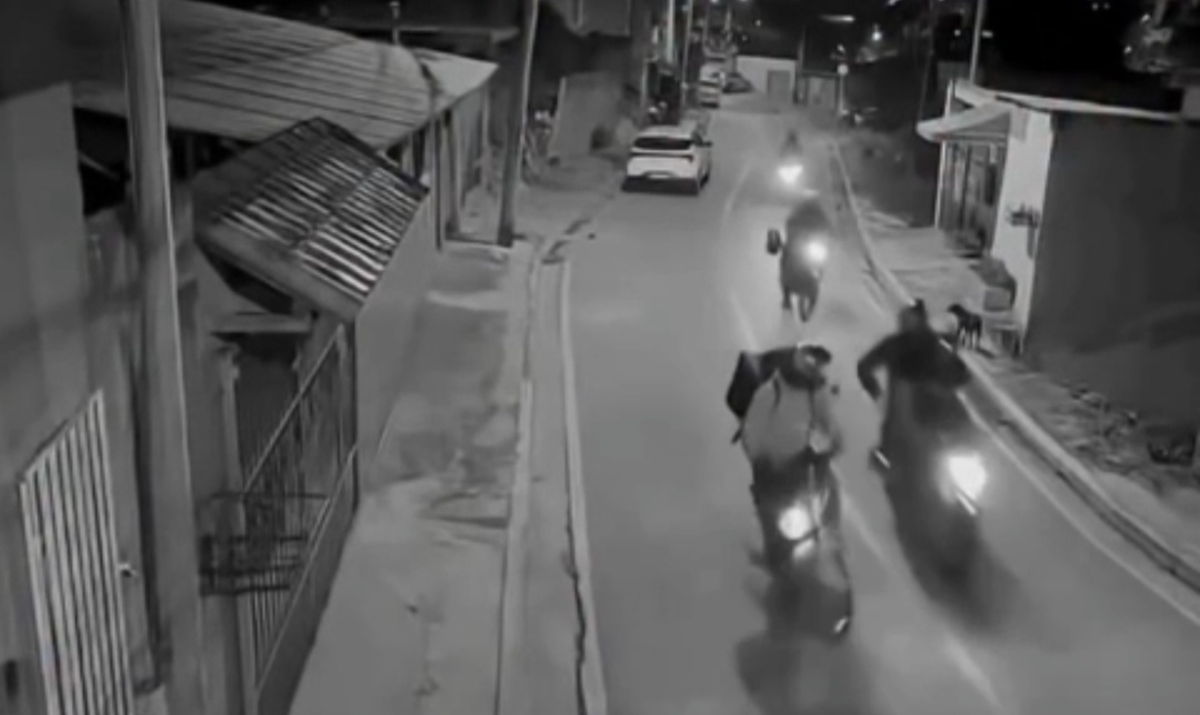 As imagens mostram o momento em que os suspeitos se aproximam e tentam encurralar a vítima. O motoboy, no entanto, reage de forma rápida: realiza uma manobra inesperada, passa entre duas motos e consegue fugir antes de ser rendido.