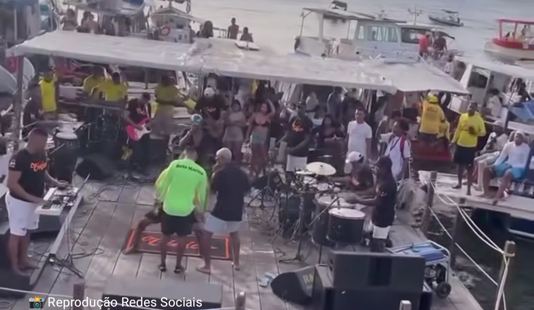 O que seria uma tarde de música e celebração na orla da Ribeira, em Salvador, acabou se transformando em cena de susto e correria. No domingo (31), uma balsa que servia de apoio para uma banda afundou durante o evento, espalhando pânico entre músicos e presentes.