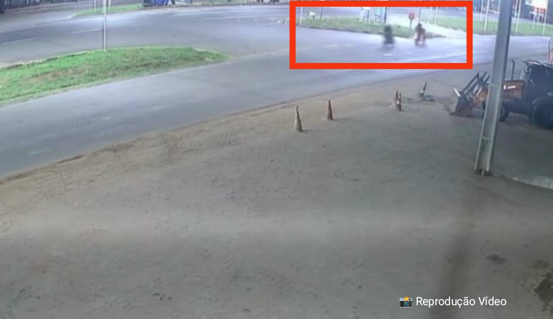 Imagens de uma câmera de segurança mostram que a vítima seguia pela via quando sua moto foi atingida na parte traseira por outro veículo que trafegava em alta velocidade.