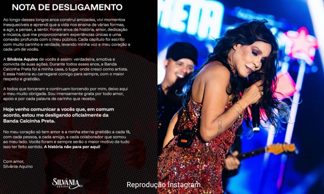 No texto, Silvânia expressou gratidão pelos anos vividos no grupo, destacando o aprendizado, as amizades e a conexão com o público. “A Banda Calcinha Preta foi minha casa, o lugar onde cresci como artista. Carregarei essa história comigo para sempre, com respeito e gratidão”, escreveu.