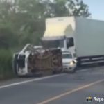 Segundo informações iniciais, o motorista perdeu o controle do veículo, que atingiu o guard-rail às margens da rodovia antes de tombar. Apesar do impacto, não há registro de feridos.