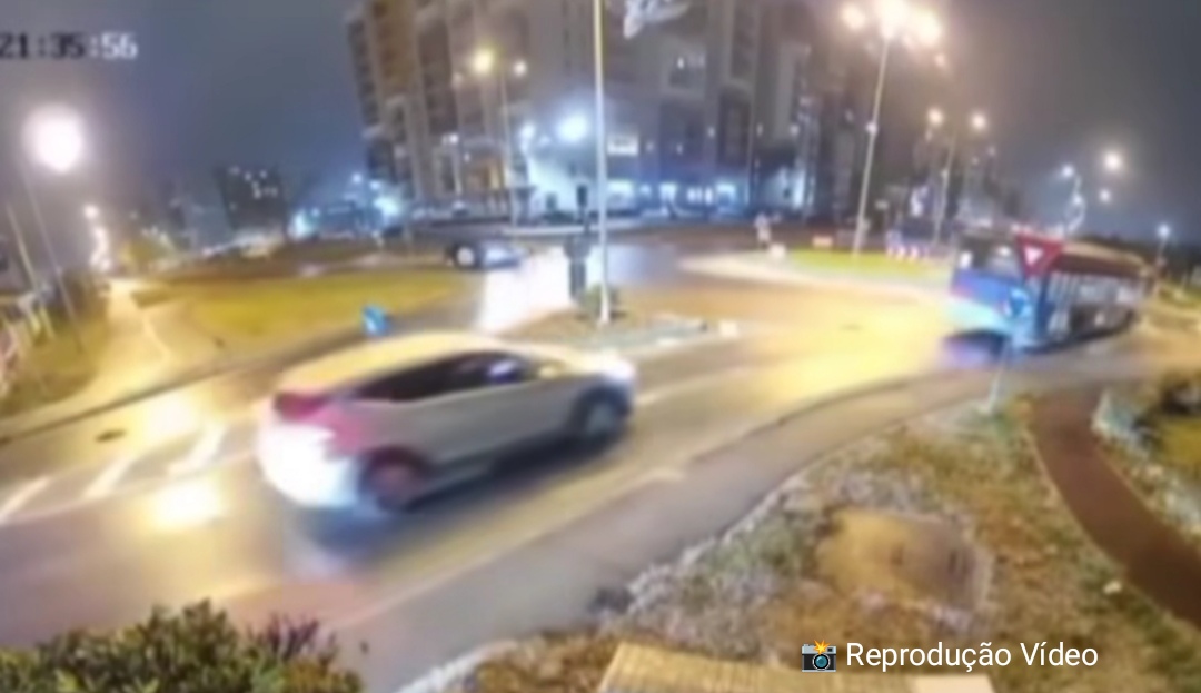 Carro “voa” após motorista perder o controle em rotatória e vídeo surpreende nas redes