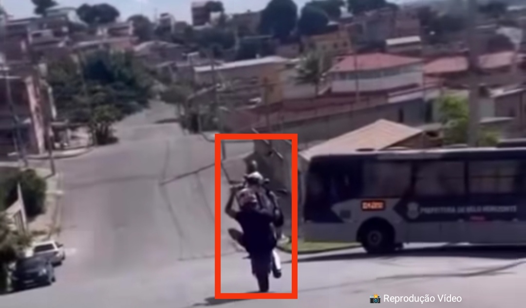 No vídeo, o motociclista aparece executando a manobra quando um ônibus de transporte coletivo surge à frente, realizando uma conversão. Sem conseguir frear a tempo, o influenciador perde o controle da motocicleta, cai na pista e acaba colidindo com o veículo, em uma cena que impressiona pela violência do impacto.