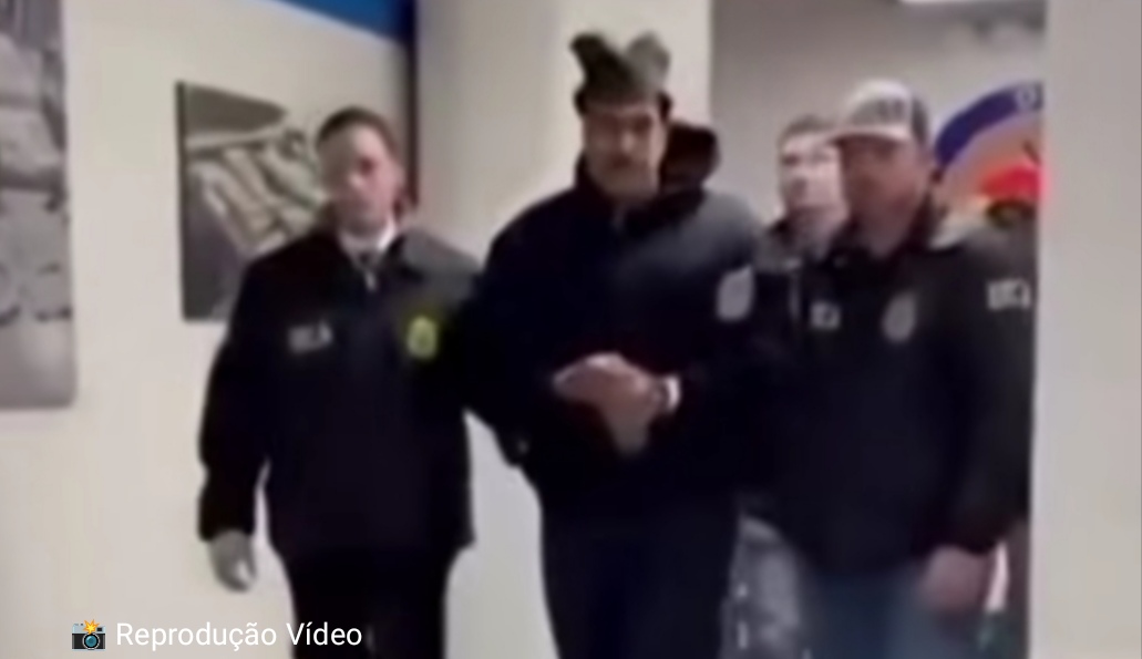 Imagens divulgadas neste sábado (3) pela Casa Branca repercutiram internacionalmente ao mostrarem o presidente da Venezuela, Nicolás Maduro, algemado no momento em que chegava à sede da Agência Antidrogas dos Estados Unidos (DEA), em Nova York. O material audiovisual foi publicado em um perfil oficial do governo norte-americano.