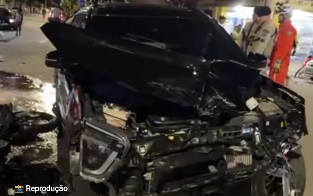 O trânsito em frente à AABB, em Amargosa, ficou parcialmente interrompido na noite deste domingo após uma colisão entre um carro e uma motocicleta. O impacto chamou a atenção de quem passava pelo local e deixou o automóvel com diversos danos. (vídeo)