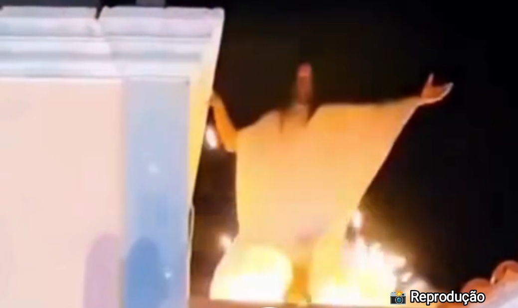 Imagens que circulam nas redes sociais mostram o momento em que as chamas se intensificam além do esperado, causando preocupação entre os participantes e o público presente.