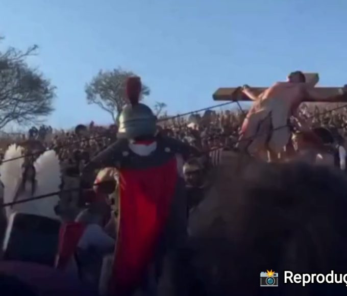 Um incidente durante uma encenação da crucificação de Jesus Cristo chamou atenção...