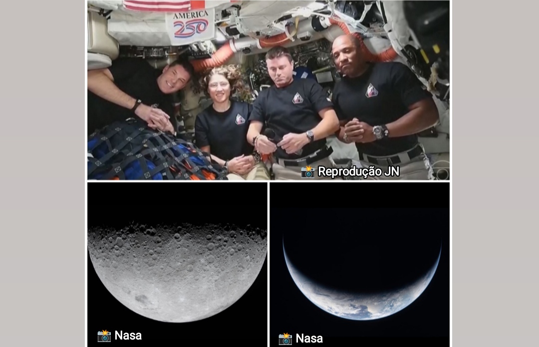 Durante o trajeto, a NASA divulgou as primeiras imagens da Terra registradas pelos astronautas fora da órbita terrestre. As fotografias revelam o planeta sob diferentes ângulos, incluindo registros parciais e outros com a Terra totalmente iluminada, proporcionando uma perspectiva rara e impressionante.