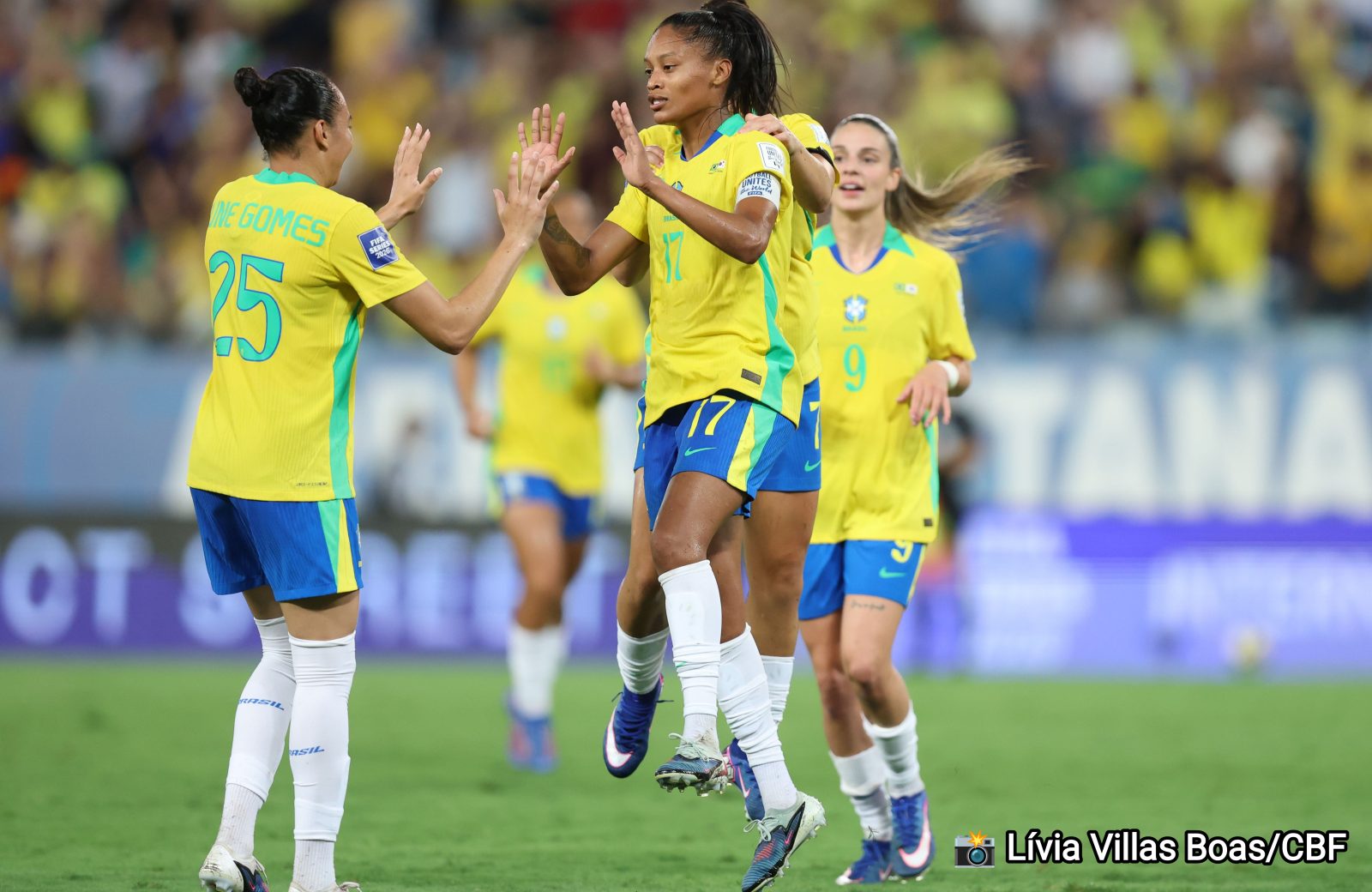 O grande destaque veio no segundo tempo, quando a equipe deslanchou de vez e transformou o domínio em gols. A vitória foi construída com gols de Ary Borges, Ludmila, Dudinha, Kerolin e Tainá Maranhão, consolidando a superioridade brasileira na partida.