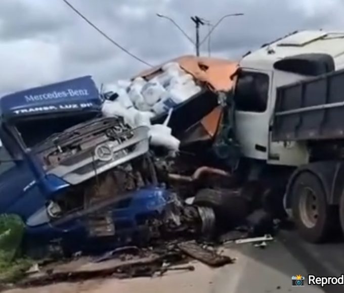 Duas carretas ficaram completamente destruídas após uma colisão frontal registrada na tarde...