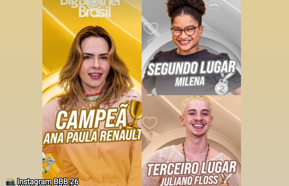 A noite decisiva do BBB 26 coroou Ana Paula Renault como a grande vencedora da temporada, confirmando o favoritismo que se consolidou ao longo do reality. A final, realizada nesta terça-feira (21/04), mobilizou o público e encerrou uma edição marcada por fortes embates e alto engajamento.