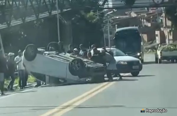 Motorista perde controle e carro capota na BR-101, em Santo Antônio de Jesus
