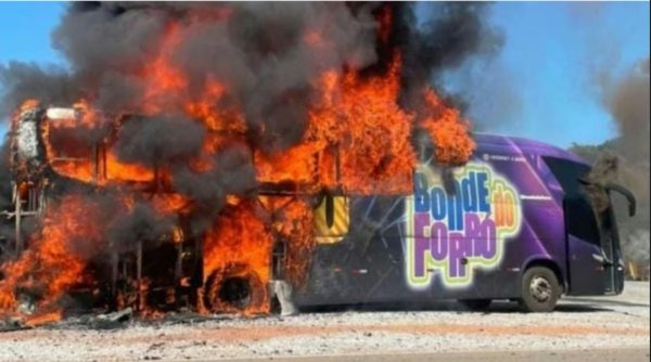Na manhã deste sábado (26), o ônibus da banda Bonde do Forró foi totalmente destruído por um incêndio na BR-120, nas proximidades do...