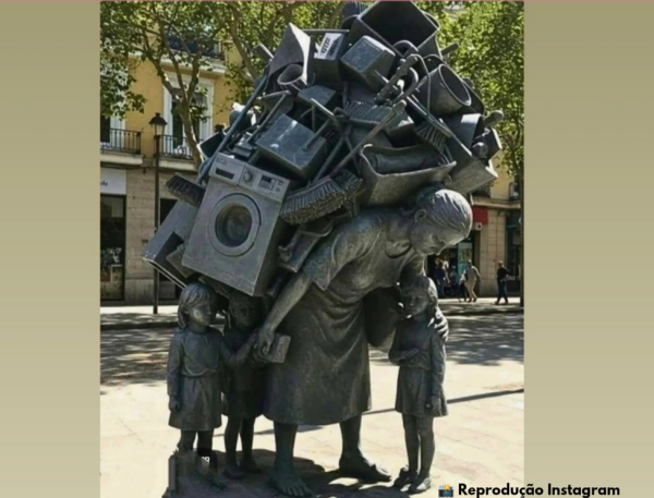 Escultura em Barcelona retrata o esforço invisível das mulheres